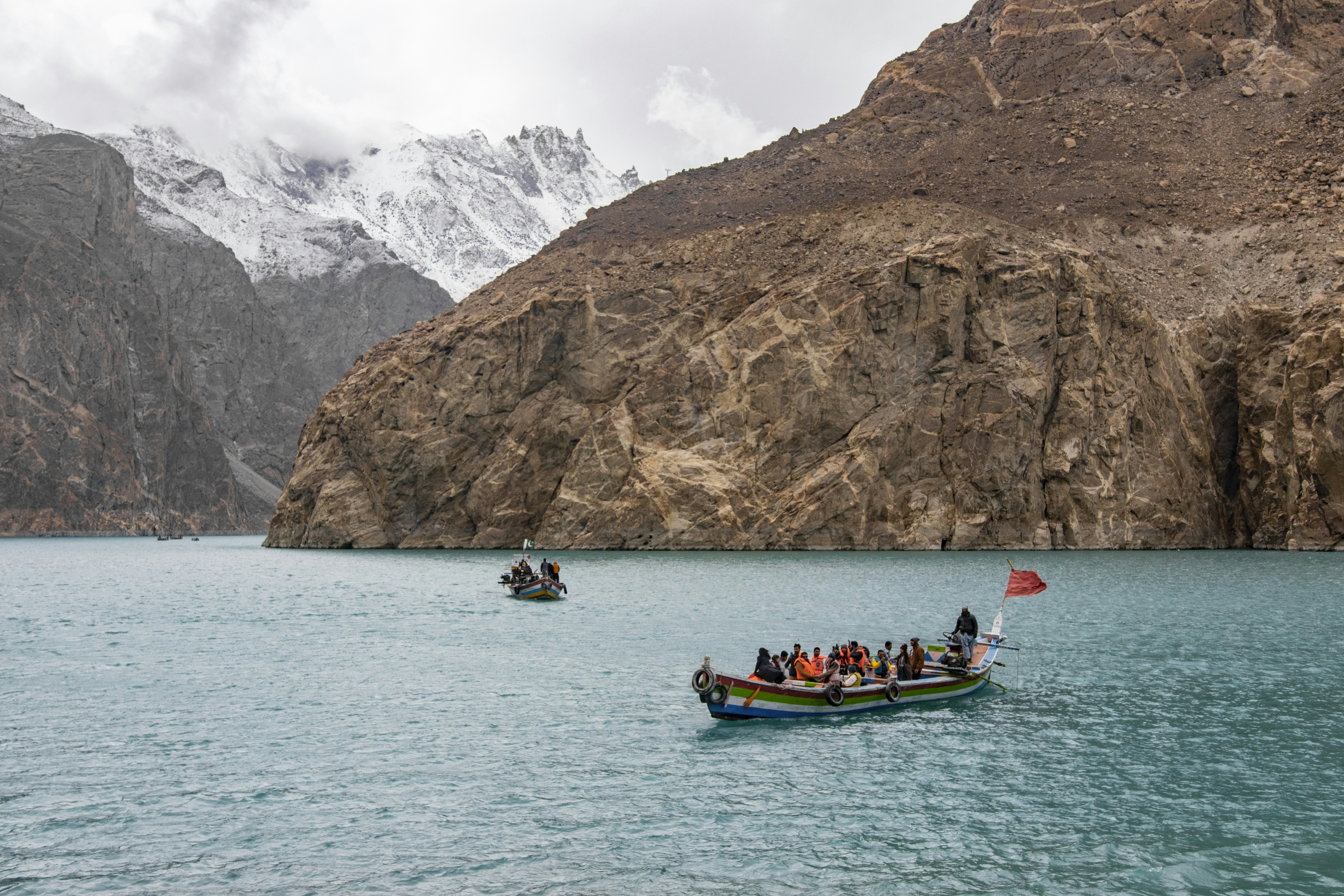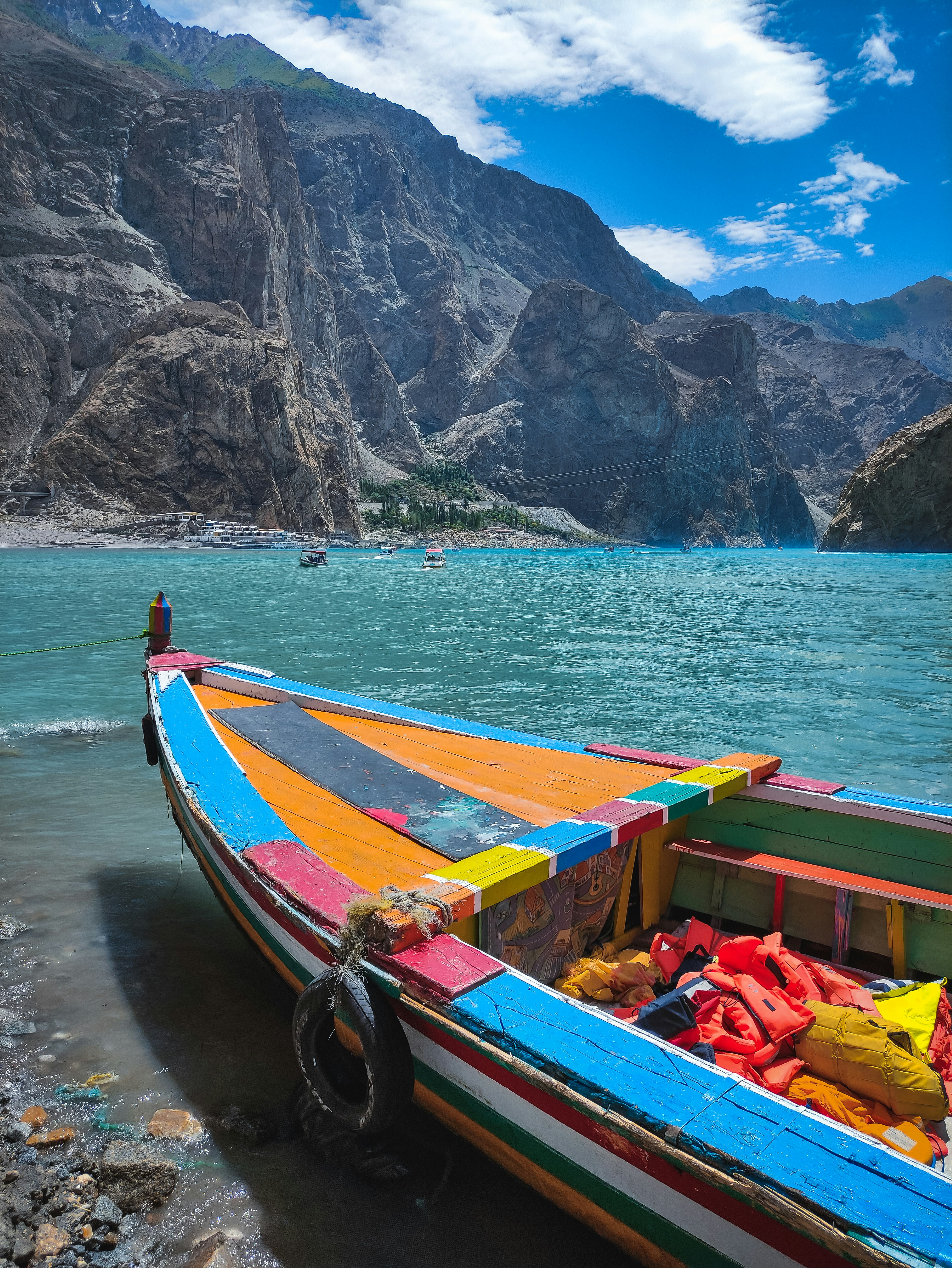 Vivi la tranquillità del Lago Attabad affittando una barca e scivolando sulle sue acque turchesi, circondato da scogliere imponenti e paesaggi mozzafiato.